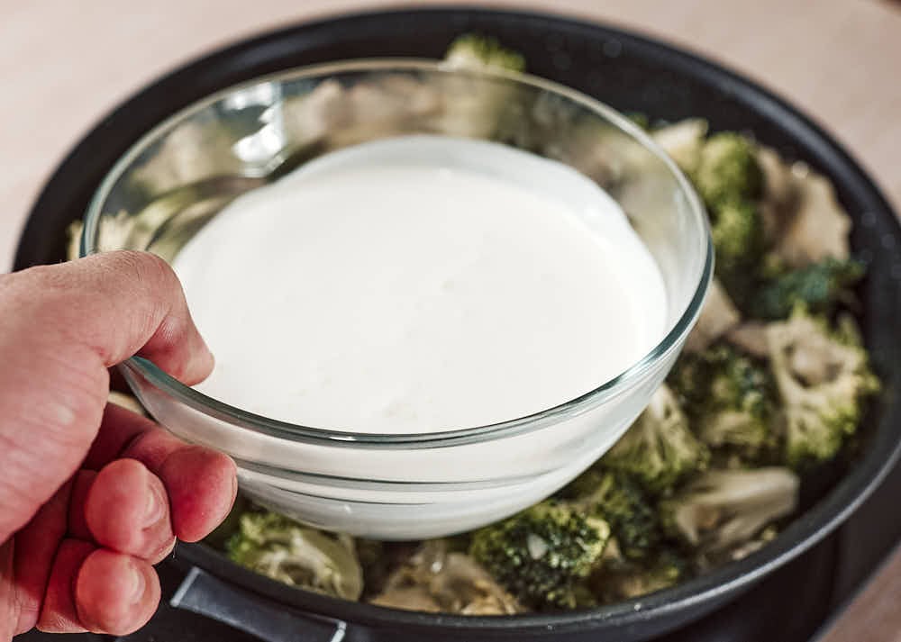 Creamy Broccoli and chicken pieces stewed in sauce become soft and tender, with a unique taste.