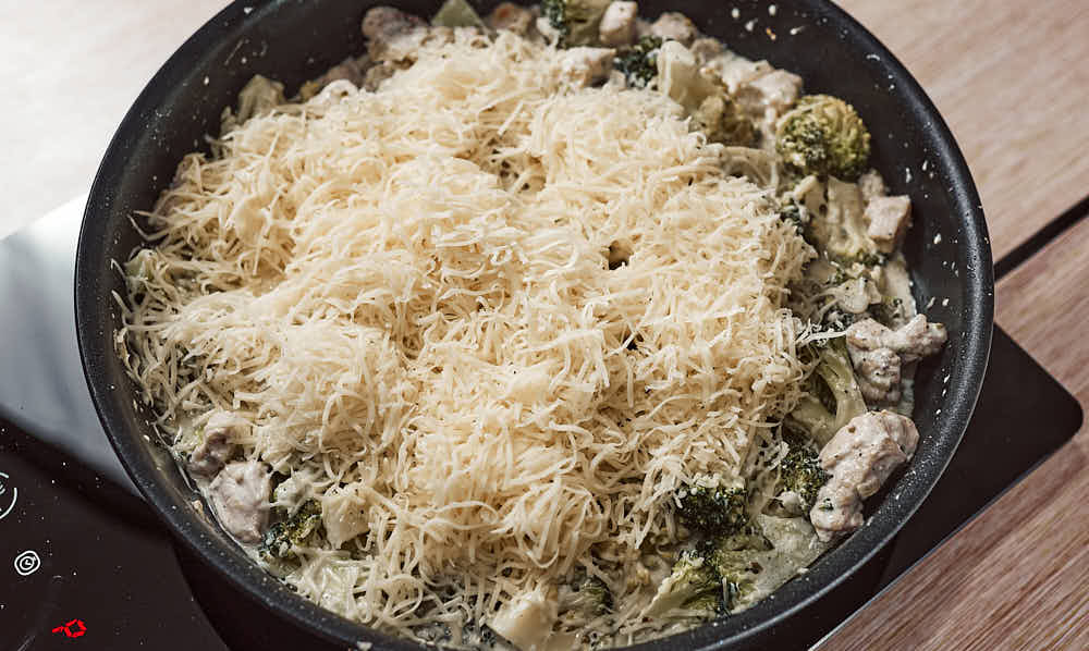 No flour or béchamel sauce needed. For readers using a reduced fat or light cream, you have the option to thicken the sauce with a cornstarch (cornstarch mixed with water before adding into the sauce). However, if you use heavy cream you won’t need to thicken it. Just simmer it until reaching your desired thickness