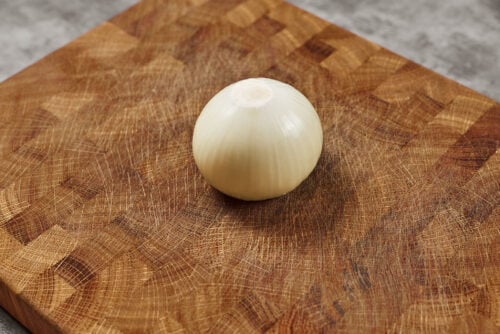 Soak the bread in cream or half-and-half and leave it soaking while you prepare the onion.