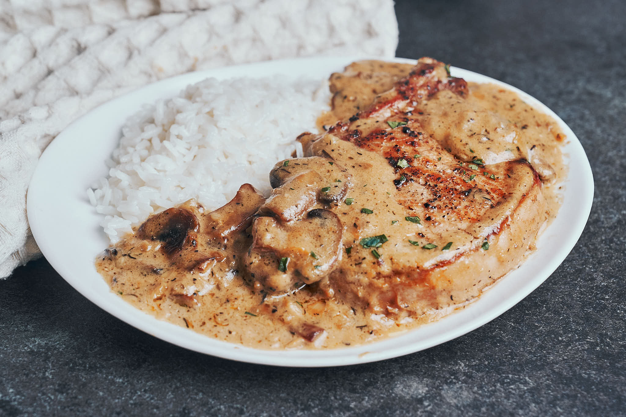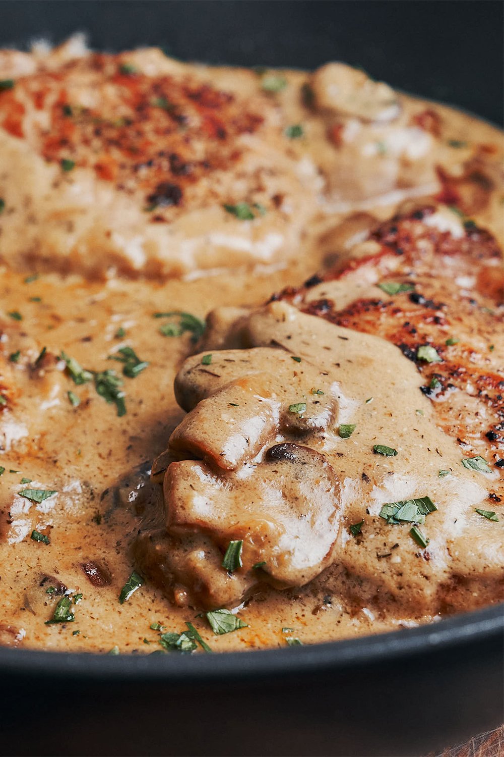 The sauce gets its rich, silky texture from heavy cream, which gently simmers with garlic and mushrooms to create that classic creamy pork chop flavor.
