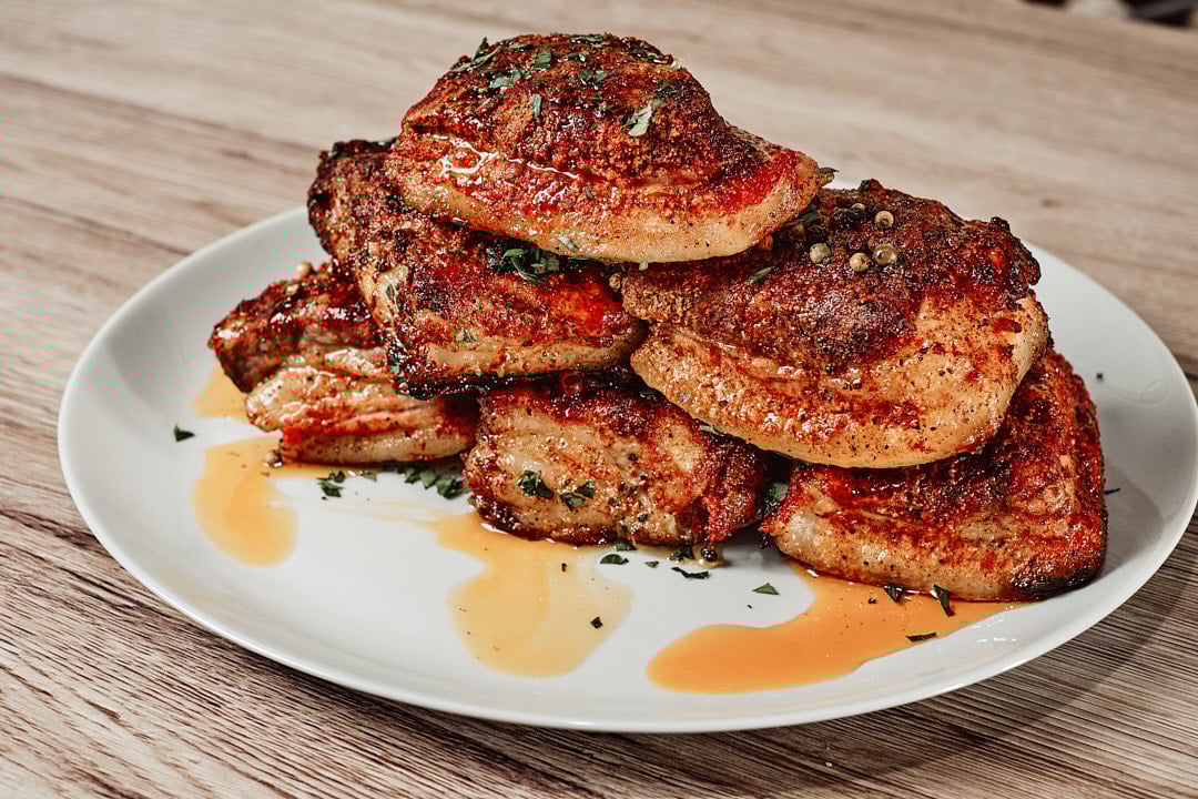 Pork belly is so rich that it needs just a few seasonings: salt, garlic powder, paprika, chili, and black pepper. Smoked paprika adds a wonderful depth of flavor and is easy to find in most supermarkets.